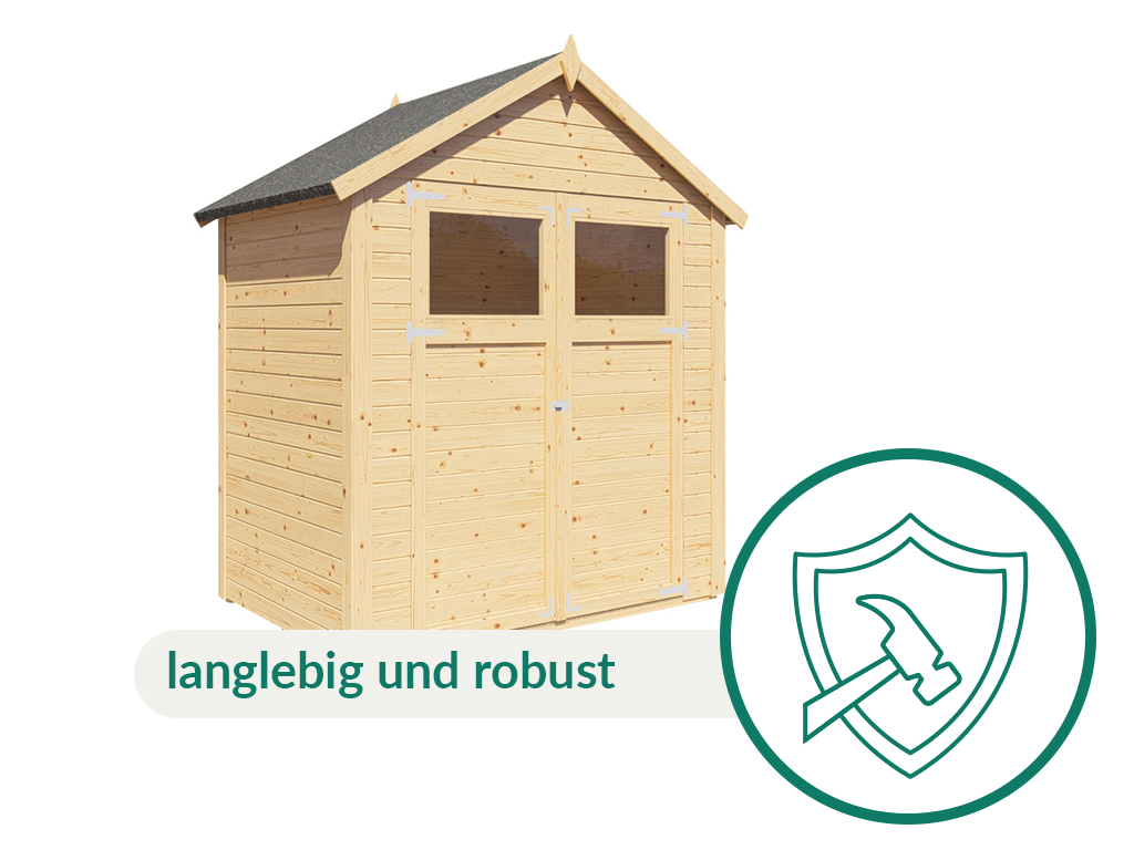 Mit seiner Wandstärke von 14 mm ist das Gartenhaus ideal als Stellplatz für Fahrräder, Gartengeräte und -utensilien geeignet. Leicht zu montieren, reicht die einfache Ausführung als Unterstand oder Abstellraum vollkommen aus.
