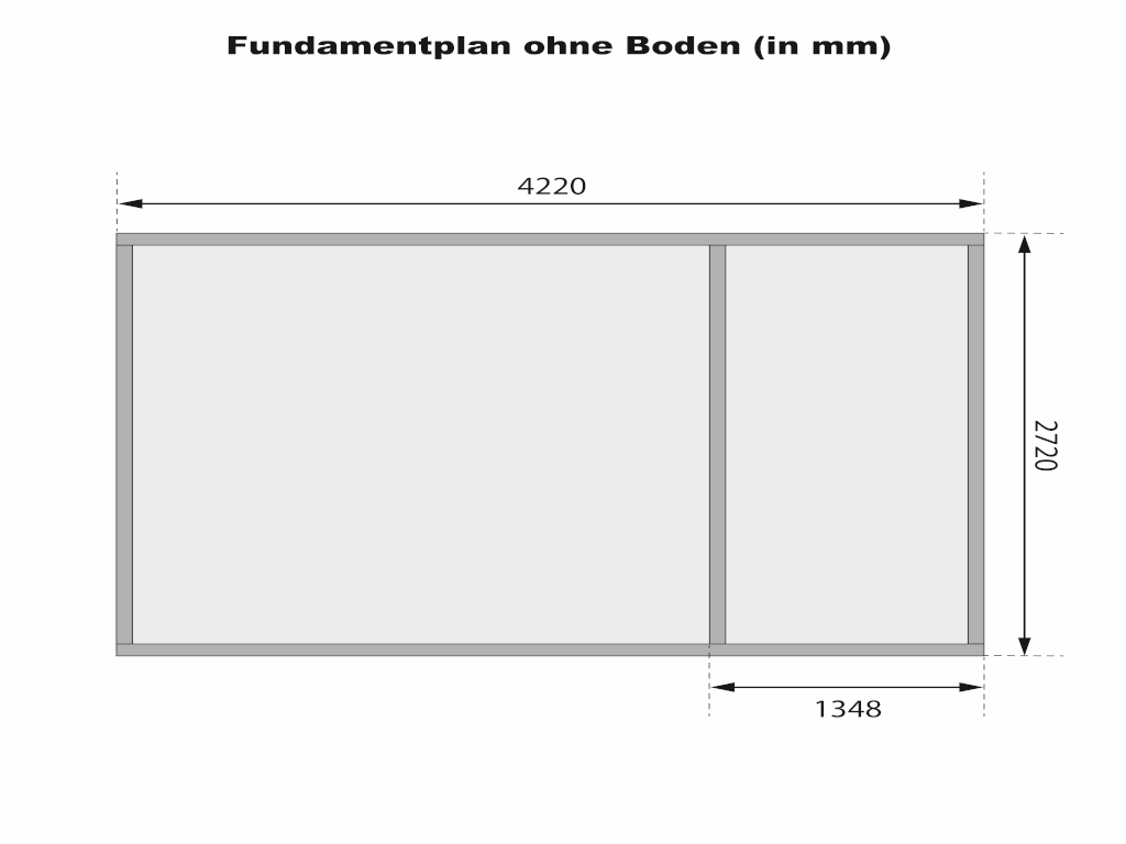 Orientiere dich für die Erstellung des Fundaments am Grundriss bzw. an der mitgelieferten Montageanleitung! Produktblätter, Montageanleitungen und weitere wichtige Hinweise findest du unter der Produkttabelle.