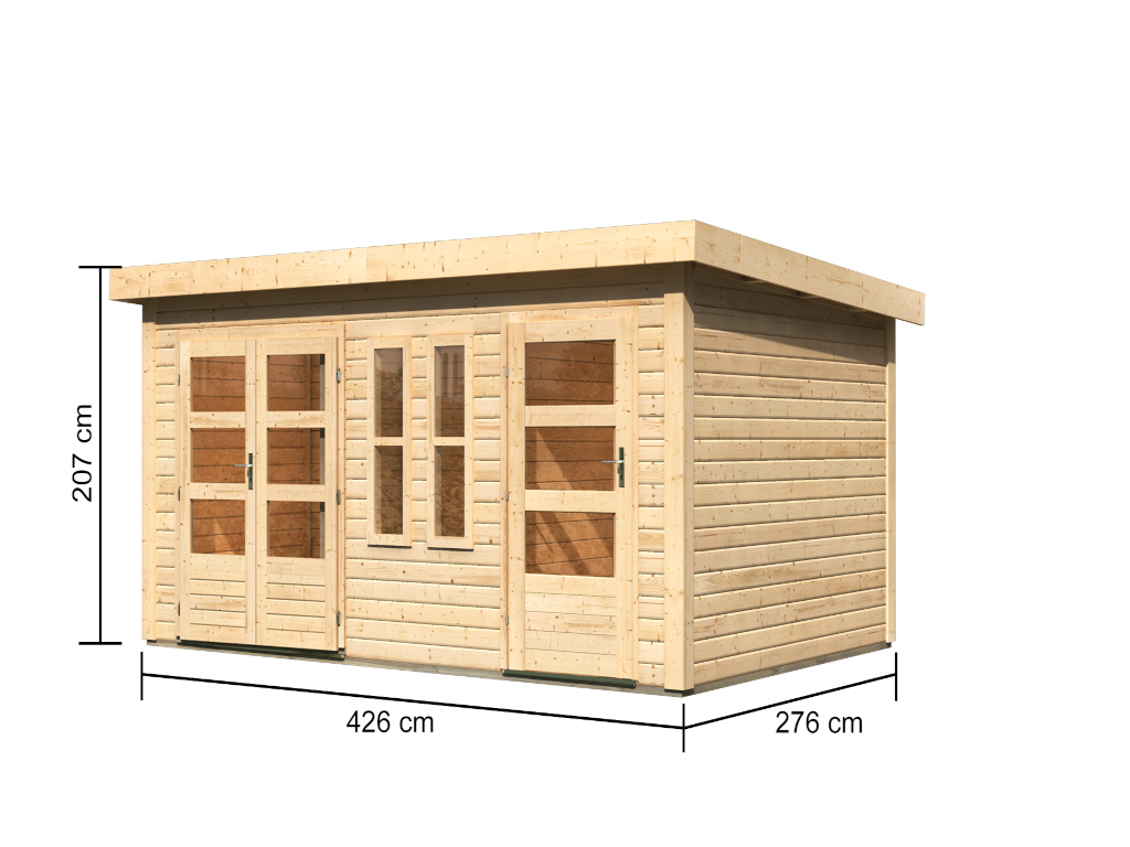 B x T x H: 426 x 276 x 228 cm, Sockelmaß Haus: B x T: 422 x 272 cm