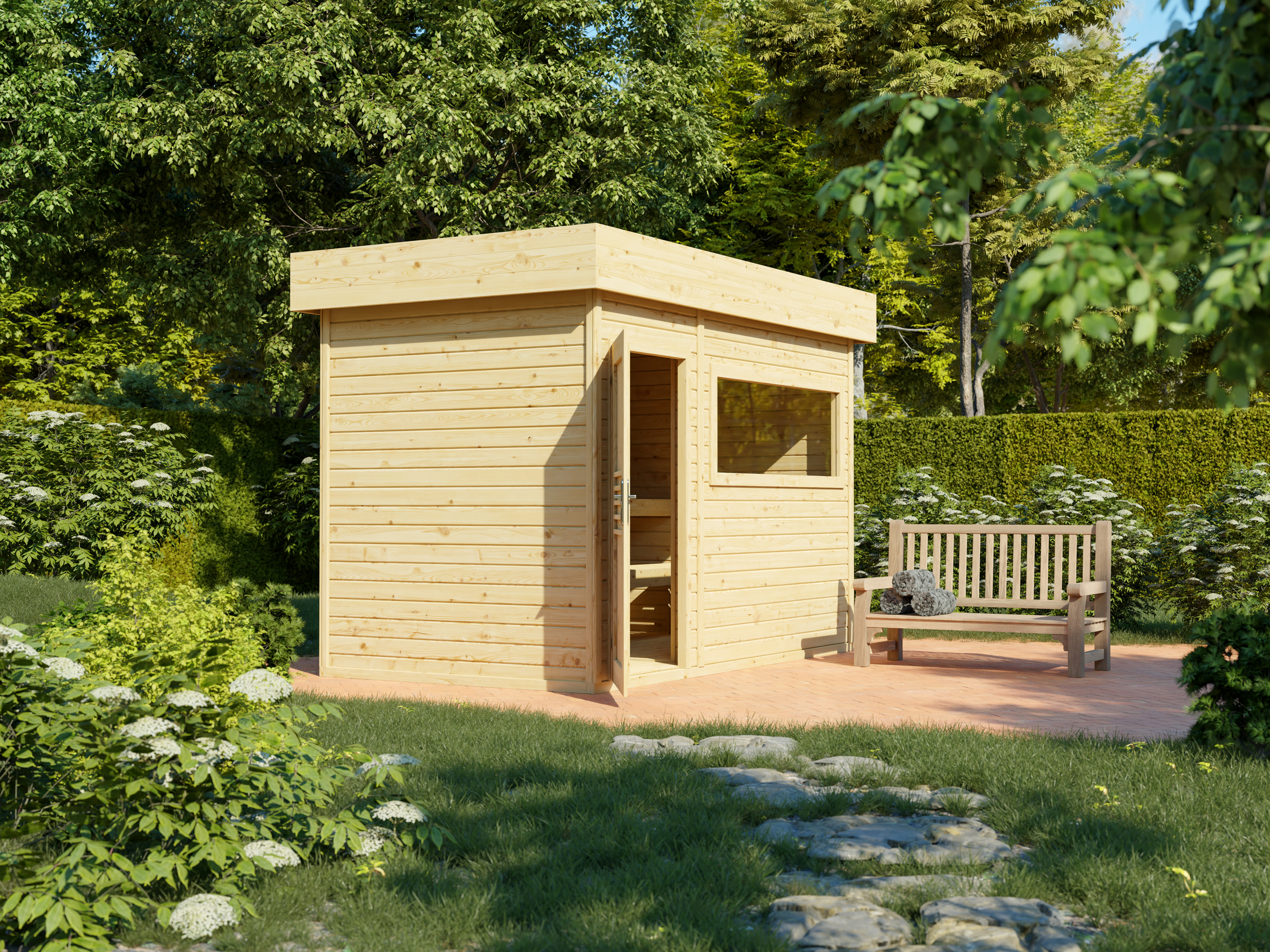 Saunahaus Cuben 38 mm naturbelassenB x T x H: 276 x 276 x 210 cm, Fronteinstieg, inkl. Vorraum