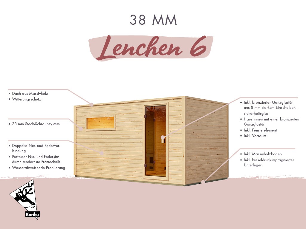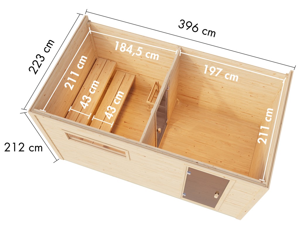 - Bitte beachten: Im Lieferumfang dieser Sauna ist KEIN Saunaofen enthalten. Von dieser Sauna sind jedoch Varianten inkl. Saunaofen erhältlich (siehe oberhalb des Warenkorb-Buttons). Zusätzlich findest du im Onlineshop eine große Auswahl an verschiedenen Öfen.