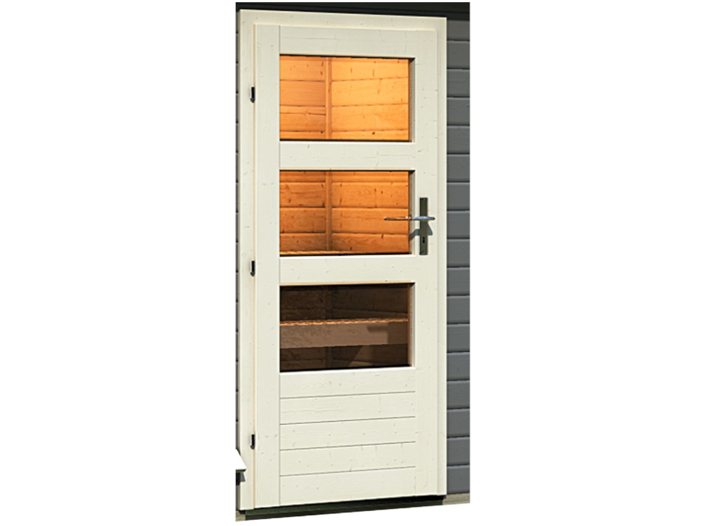 Lieferumfang: Saunahaus Norge, 3 Liegebänke, Beschlagbeutel