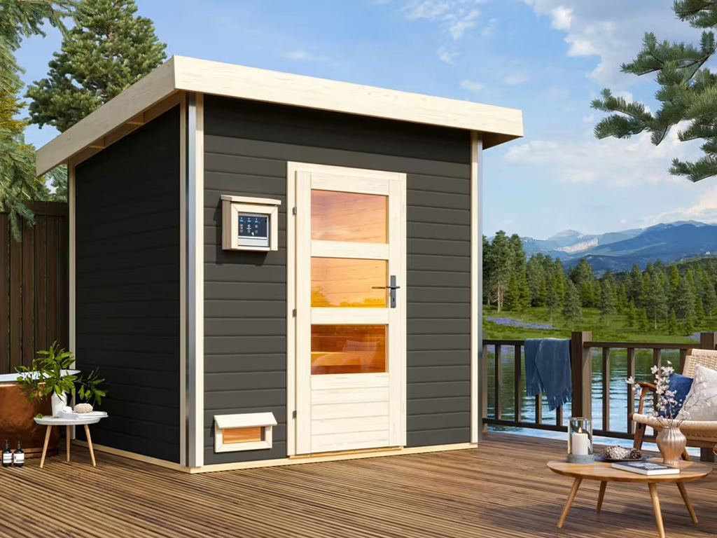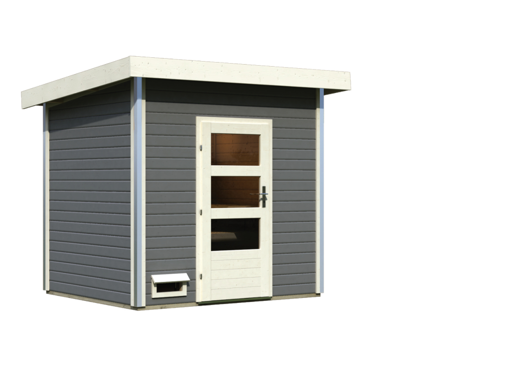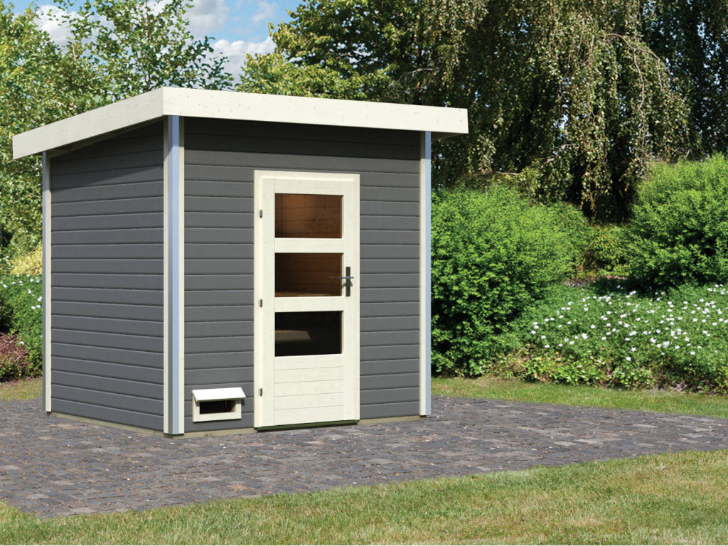 Gartensauna Norge 38 mm mit moderner Tür terragrau