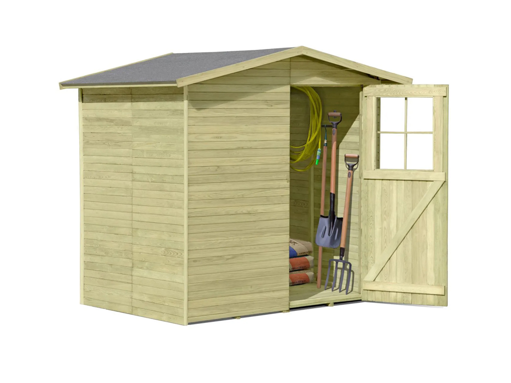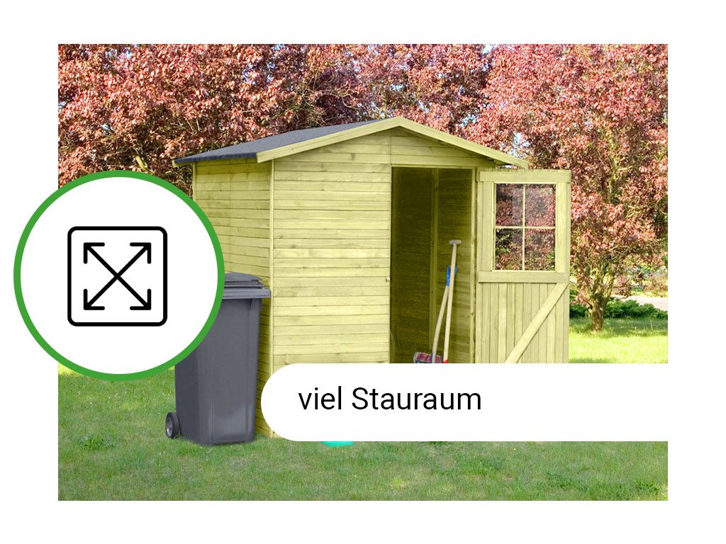 Die Grundfläche des Gartenhauses beträgt 3,24 m². Eine optimale Raumnutzung wird dank einer Firsthöhe von 210 cm gewährt.