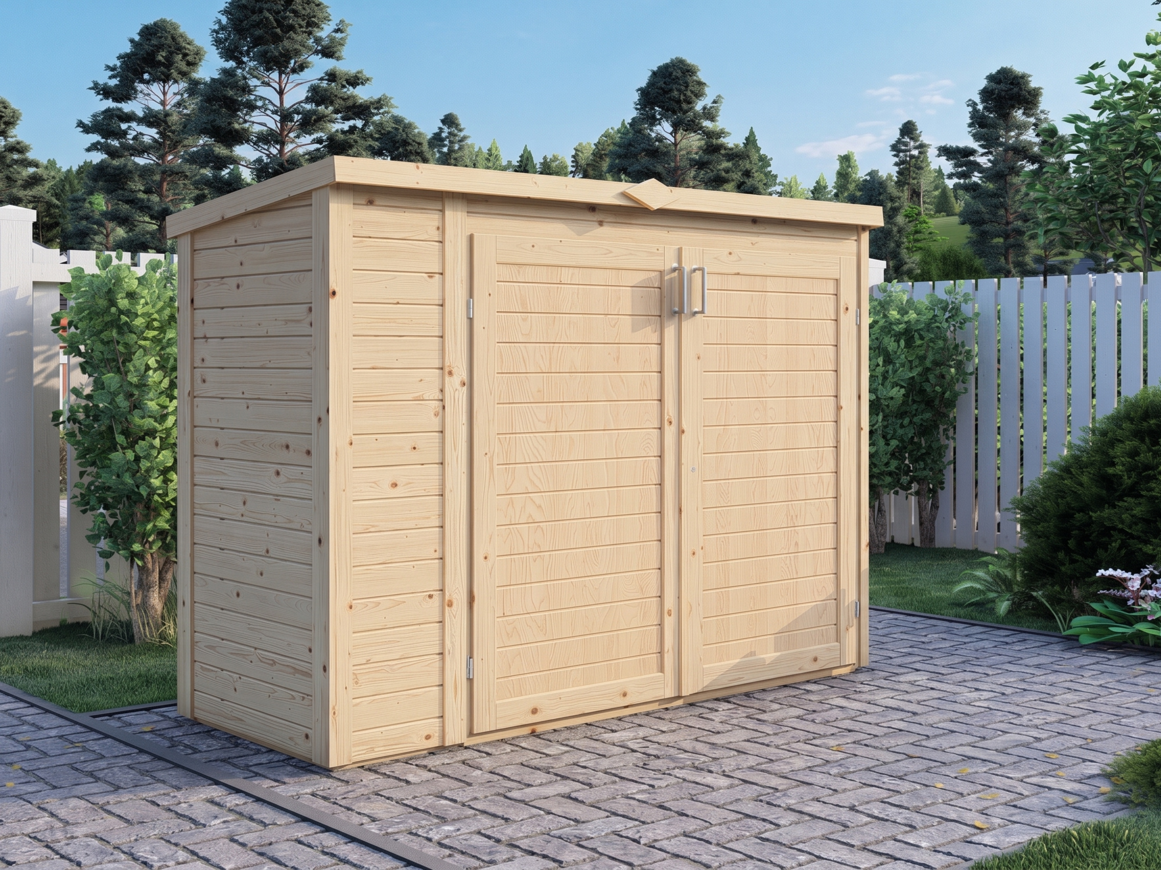 Gerätehaus Blockbohlenhaus Anbauschrank Barik...B x T x H: 280 x 123 x 236,5 cm, 2 Räume, inkl. Zylinderschloss