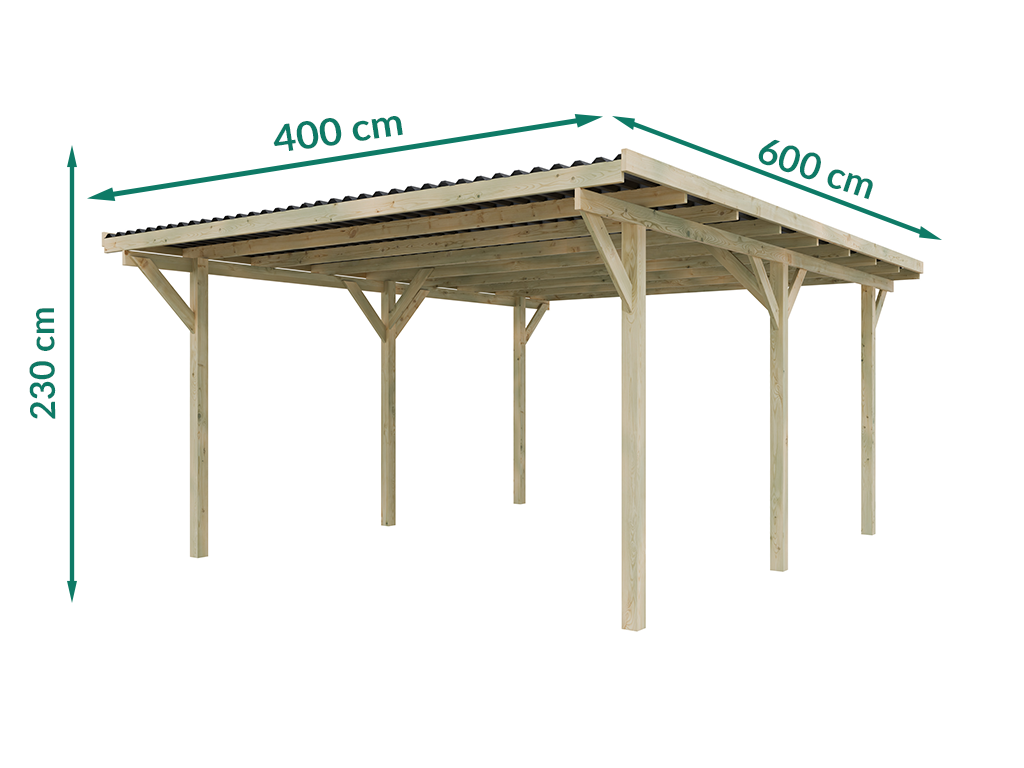 WOODTEX Holz-Einzelcarport 400 x 600 cm, Nadelholz