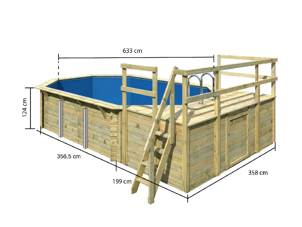 Holzpool 4 Set A naturbelassenB x T x H: 611 x 400 x 124 cm, kesseldruckimprägniert, inkl. Poolfolie, Schutzvlies, Skimmer,...