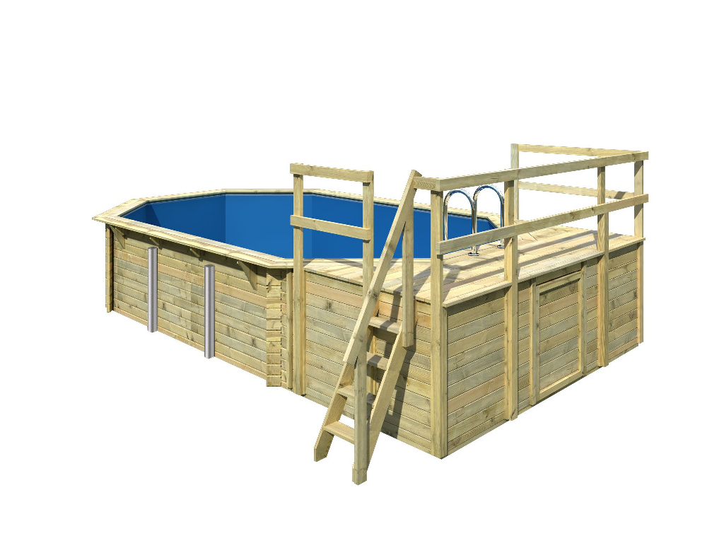 Holzpool 4 Set C naturbelassenB x T x H: 611 x 400 x 124 cm, kesseldruckimprägniert, inkl. Poolfolie, Schutzvlies, Skimmer,...