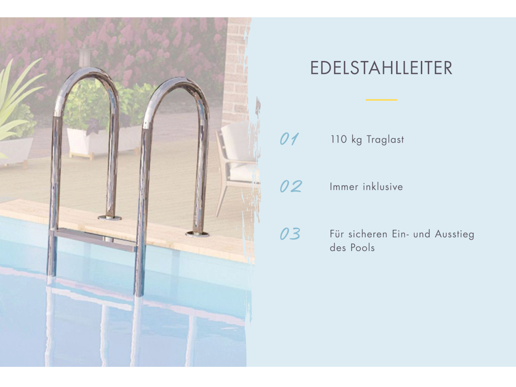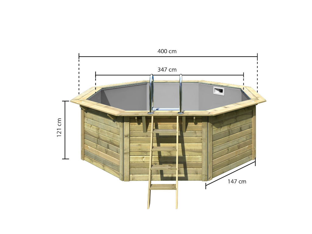 B x T x H: 400 x 400 x 124 cm, inkl. Poolfolie und Schutzvlies, kesseldruckimprägniert