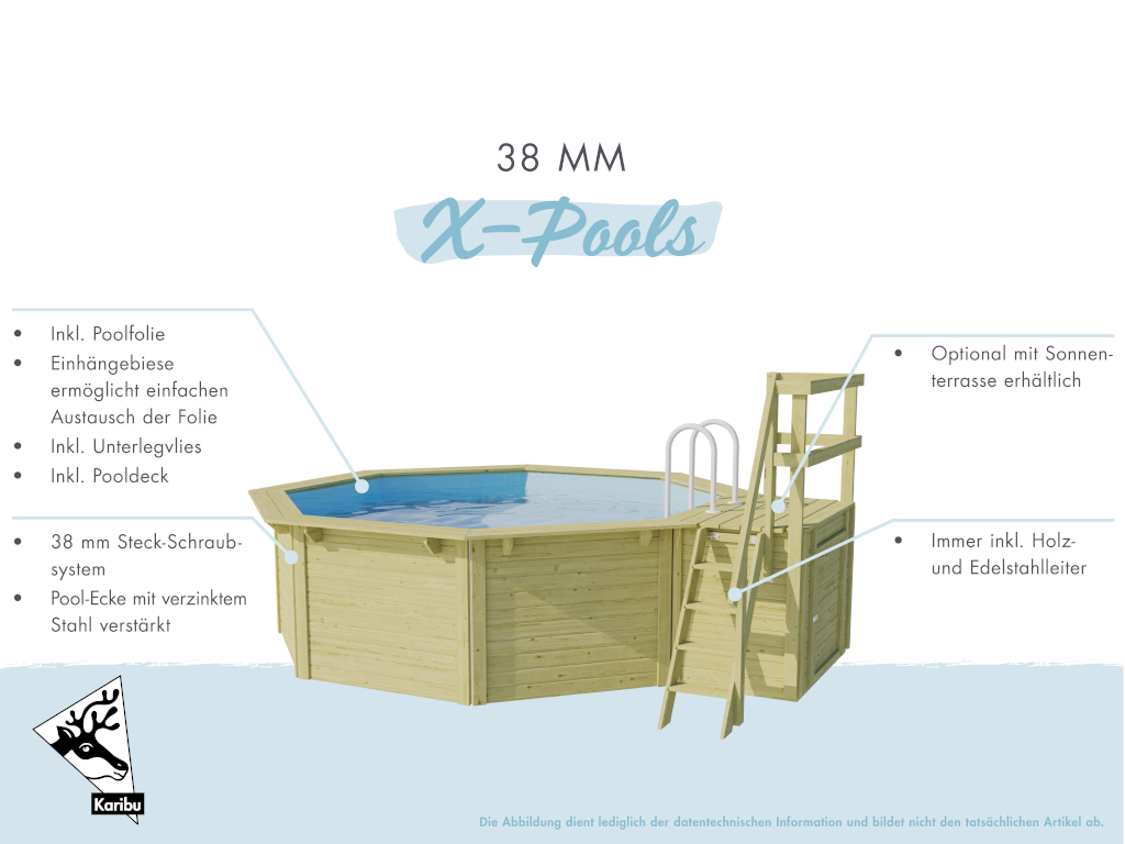 Holzpool Modell X1, inkl. Terrasse & Filteranlage