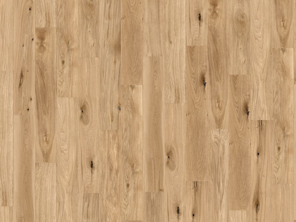 Die markante Eichenholzmaserung des Dekors vermittelt Behaglichkeit und natürliche Lebendigkeit. Landhausdielen besitzen mit ihrer Ein-Stab-Optik einen natürlichen und rustikalen Look, der jeden Raum gemütlich wirken lässt. Die 4-seitig umlaufende V-Fuge betont die Dielenoptik.