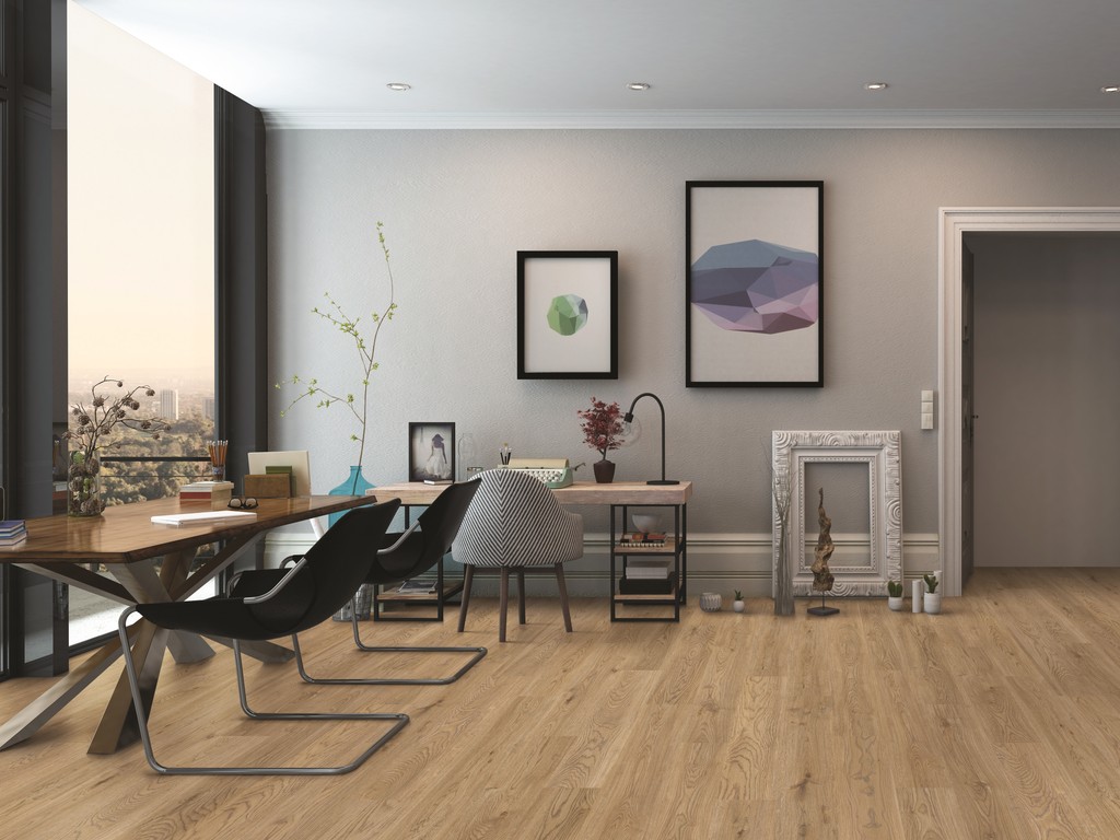 Dieser Artikel ist nicht feuchtraumgeeignet und sollte daher nicht in Küchen und Bädern verlegt werden. Der Boden ist unempfindlich gegenüber Temperaturschwankungen und hat eine hohe thermische Leitfähigkeit, weshalb er sich zur Verlegung über einer Warmwasserfußbodenheizung eignet. Da der Hohlraum zwischen Boden und Untergrund wie ein Resonanzkörper für Tritt- und Gehschall wirkt, ist die integrierte Dämmung eine Wohltat – nicht nur für die Nachbarn. Eine zusätzliche Unterlage ist nicht erforderlich und nicht zulässig.