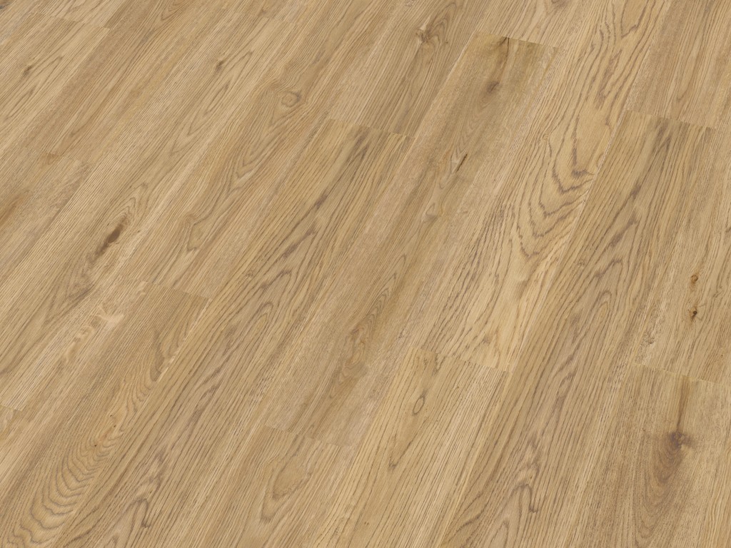 Das attraktive Eichenholzdekor fühlt sich in nahezu jedem modernen Einrichtungsstil zu Hause. Das natürliche Landhausdielendesign besitzt mit seiner Ein-Stab-Optik einen natürlichen und rustikalen Look, der jeden Raum gemütlich wirken lässt. Die 4-seitig umlaufende V-Fuge der Diele betont den rustikalen Landhauscharakter. Aufgrund der strapazierfähigen Lackversiegelung ist die Oberfläche hervorragend gegen Schmutz, Feuchtigkeit und Kratzer gewappnet.