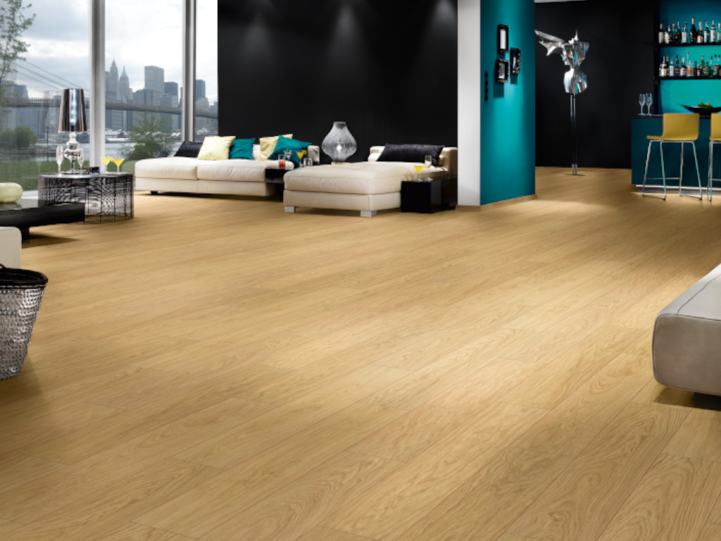 Laminat Trend XL Eiche beige Landhausdiele8 mm stark, XL-Breitdiele, feuchtraumgeeignet, Klick-Verbindung, 4-seitige Fase, strukturiert