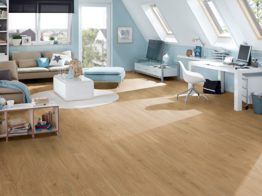 Mithilfe der Klickverbindung kann der Boden problemlos schwimmend verlegt werden. Mit der Nutzungsklasse (NK) 23 eignet sich dieser Bodenbelag für stark frequentierte Flächen des privaten Bereichs wie Treppenflure oder Eingangsbereiche. In Wartezimmern, Büros oder Boutiquen mit kontinuierlicher Nutzung kann er mit der Nutzungsklasse (NK) 32 im gewerblichen Bereich punkten.