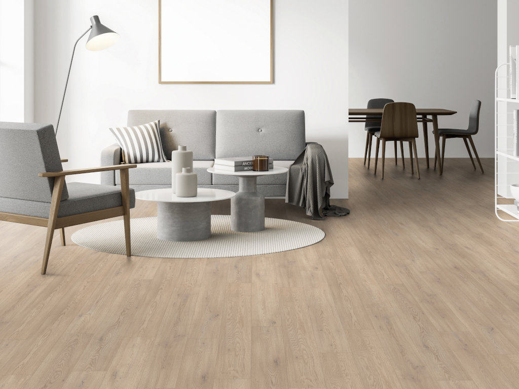 Laminat ist die ideale Kombination aus Design und Funktionalität. Die moderne Optik und die besonders pflegeleichte Oberfläche dieses Laminatbodens machen ihn zum perfekten Bodenbelag für fast jeden Bereich.