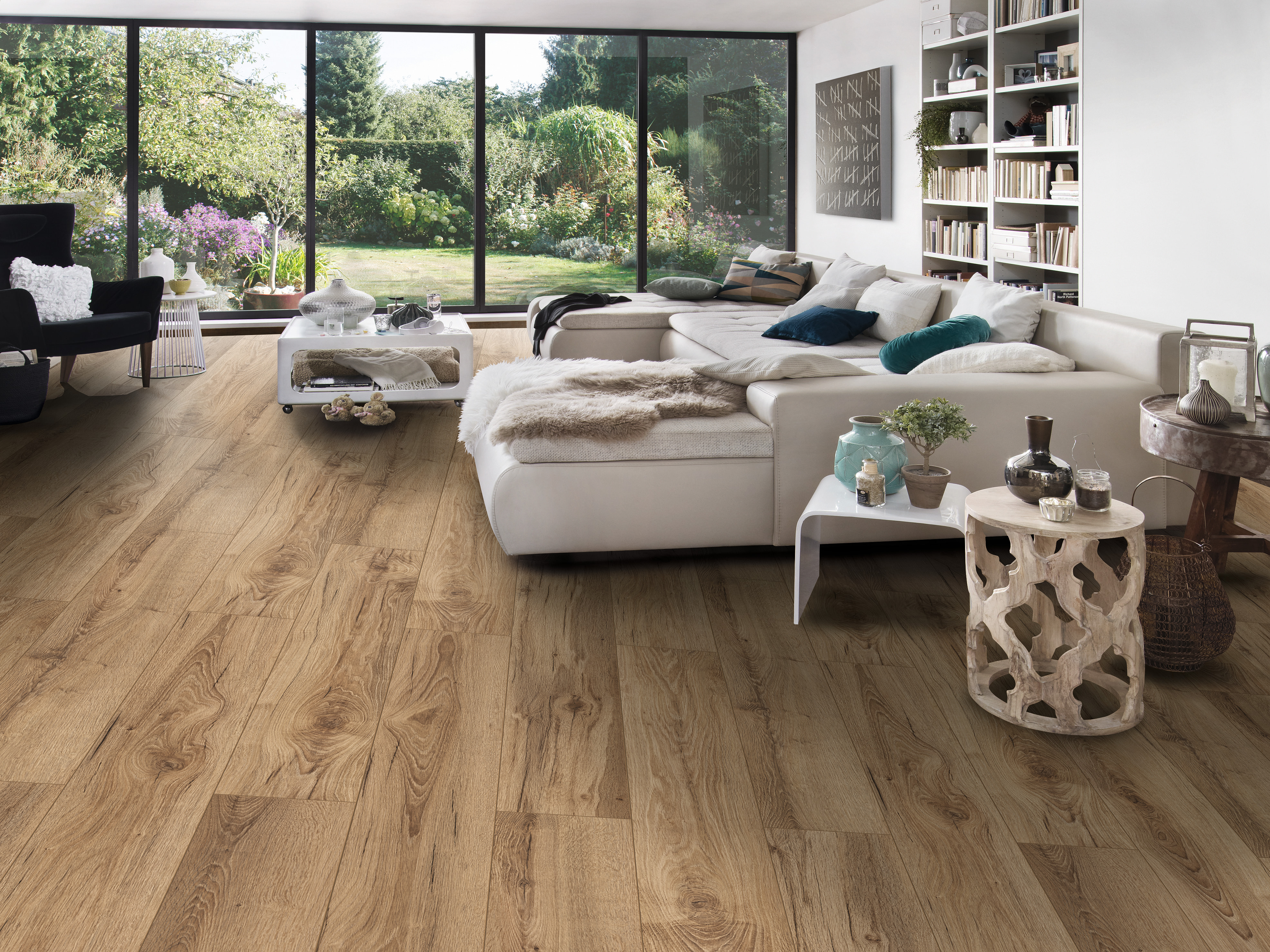 Laminat Atlantic 8 Sundance Oak K3261288 × 195 x 8mm, Klickverbindung, Feuchtraumgeeignet, Holzstruktur synchron, 4-seitige Fase