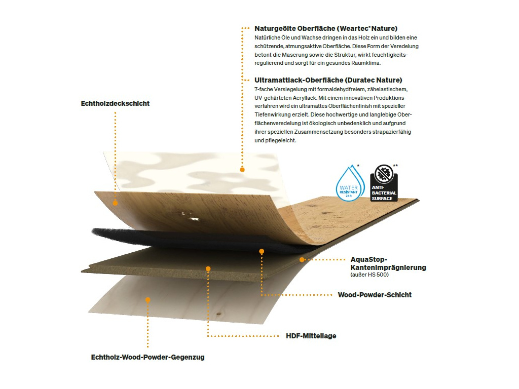 • Lindura HD 400 - Innovativer, sehr strapazierfähiger Hightech-Holzboden im XXL-Format mit Wood-Powder-Technologie
