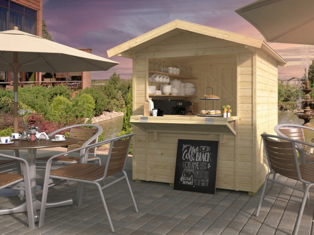 Marktstand - Verkaufsstand Stella 8,2 m² 16 mm...B x T x H: 323 x 259 x 239 cm, naturbelassen, ohne Boden