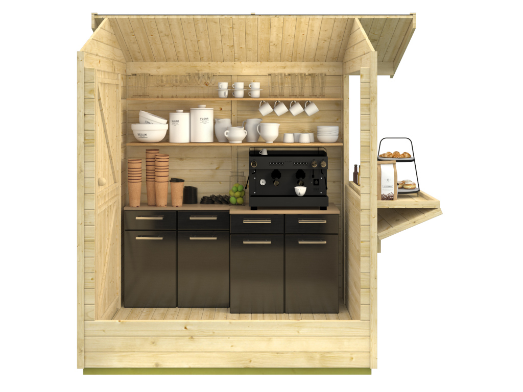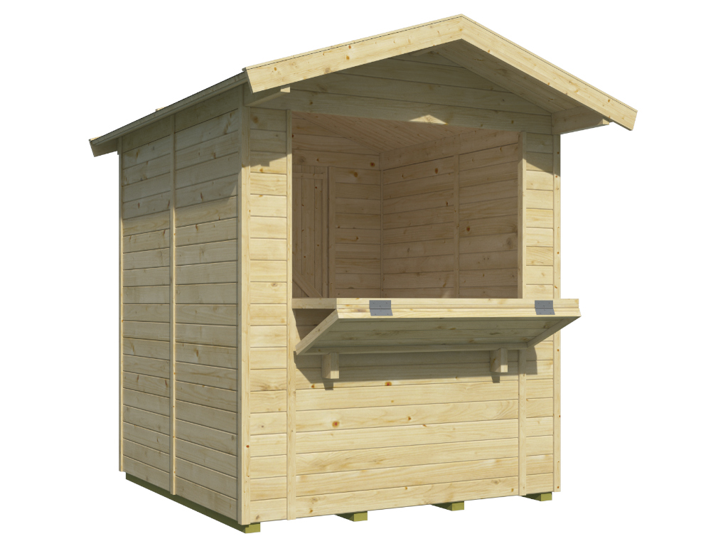 Dank der vorgefertigten 16 mm starken Wandelemente kann der Verkaufsstand einfach auf- und abgebaut werden. - Naturbelassen