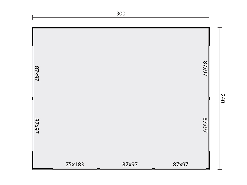 | Sockelmaß Haus - Breite (cm): | 300 cm |