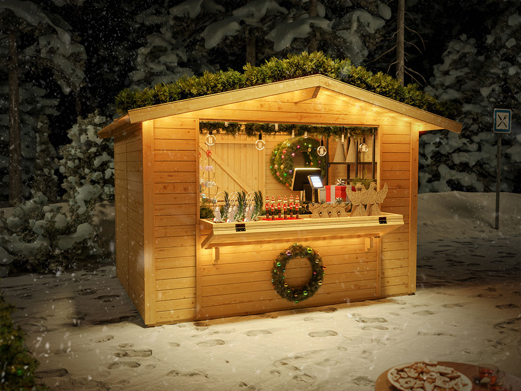 Marktstand/Verkaufsstand mit Verkaufsöffnung und Satteldach