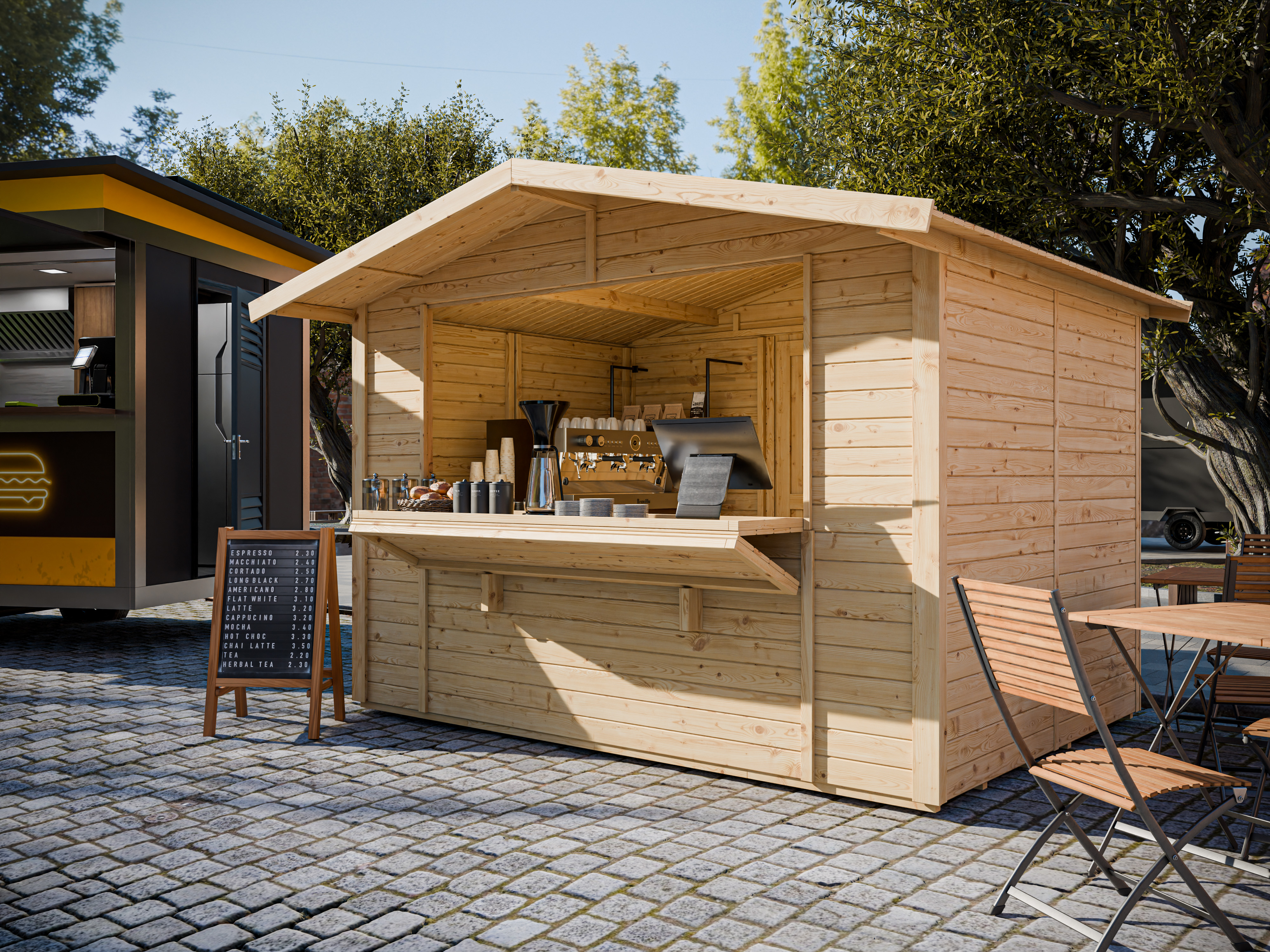 Marktstand - Verkaufsstand Stella 8,2 m² 16 mm...B x T x H: 323 x 259 x 239 cm, naturbelassen, ohne Boden