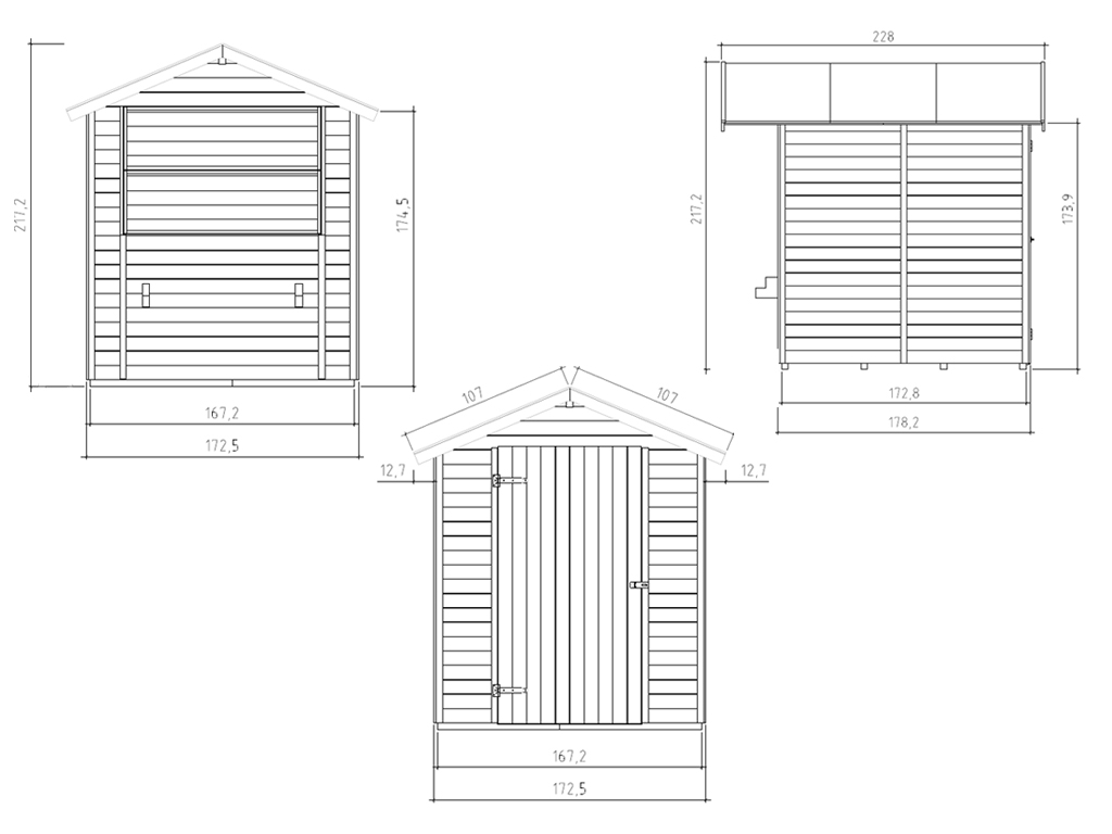 Der 3 m² große Marktstand mit einem Wandaußenmaß ohne Dachüberstände von 169,9 x 175,5 cm ist mit einem großem Verkaufsfenster (125,8 x 80 cm) ausgestattet, das sich von innen mit einem Riegel verschließen lässt. Bei geöffnetem Verkaufsfenster bietet dir der Marktstand eine komfortable ca. 42,3 cm tiefe Verkaufstheke, die dir ermöglicht eine Vielzahl deiner Produkte optimal zu präsentieren. - Einzeltür in Rückwand