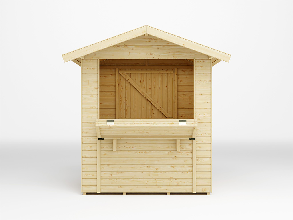 Dank der vorgefertigten 13,5 mm starken Wandelemente kann der Verkaufsstand einfach auf- und abgebaut werden. - Naturbelassen