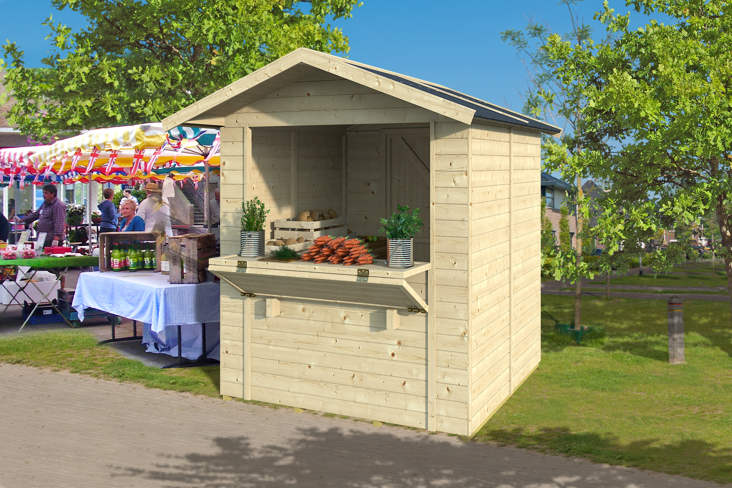 Marktstand - Verkaufsstand Stella 8,2 m² 16 mm...B x T x H: 323 x 259 x 239 cm, naturbelassen, ohne Boden