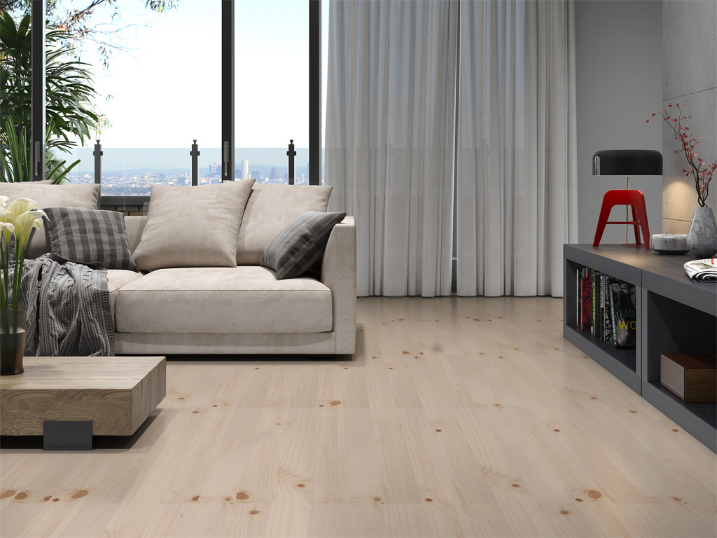 Massivholzdielen sind das Nonplusultra in Sachen Bodenbelag. Die schöne, natürliche Maserung des Kiefernholzes besitzt oft Astfüllungen und kleinere Unregelmäßigkeiten, die gut zu natürlichen Wohnstilen passen. Kiefernholz wird aufgrund seiner Nachhaltigkeit und ausgezeichneten Öko-Bilanz sehr geschätzt, da es sehr schnell nachwächst. Das Holz ist relativ weich und elastisch.