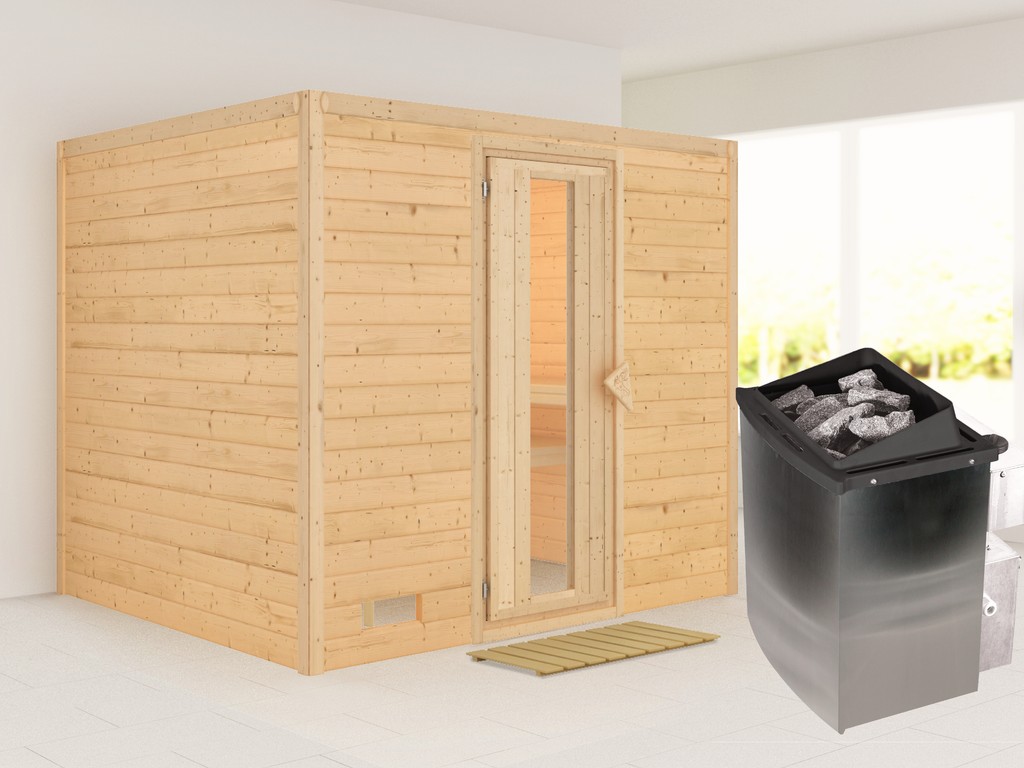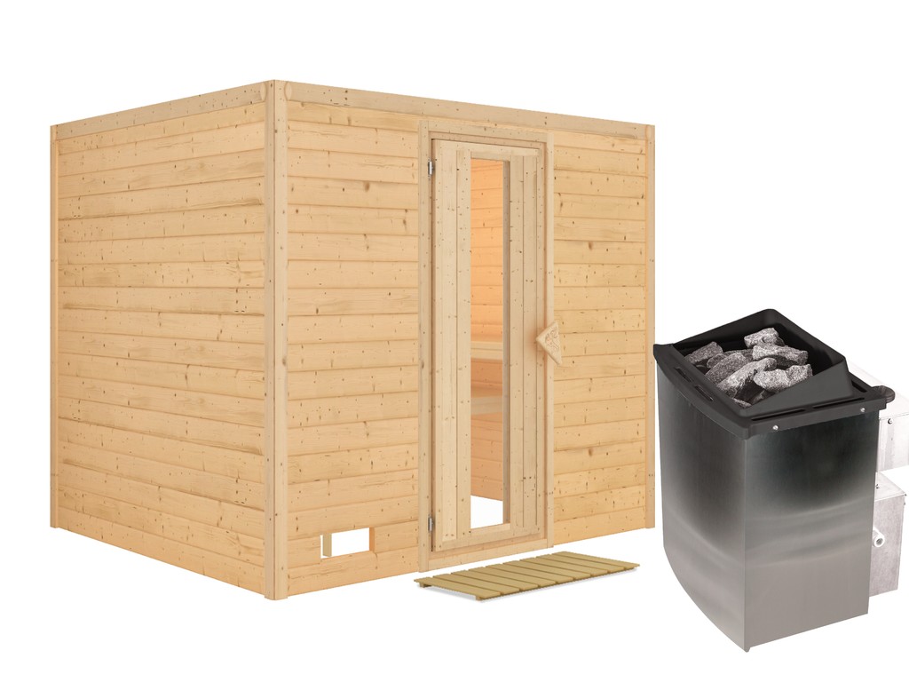 B x T x H: 231 x 196 x 200 cm, 3 Liegen, inkl. 9 kW Saunaofen + int. Steuerung