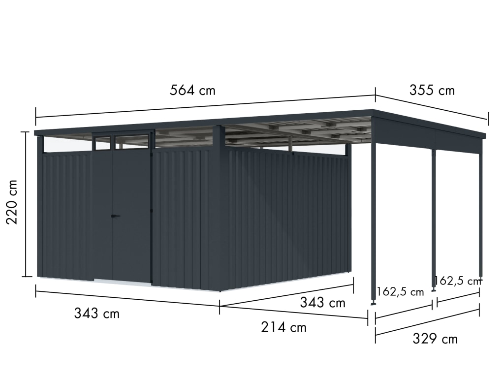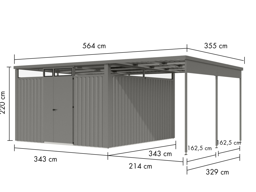 | Außenmaß inkl. Dachüberstand - Breite (cm): | 343 cm |