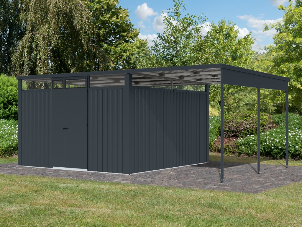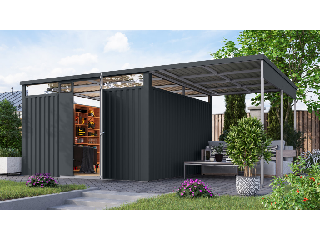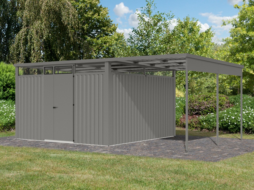 Gerätehaus Classico Open Lounge Small rechts,...B x T x H: 582 x 238 x 219 cm, Sockelmaß Haus: 466 x 238 cm