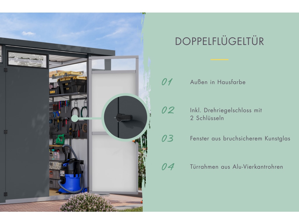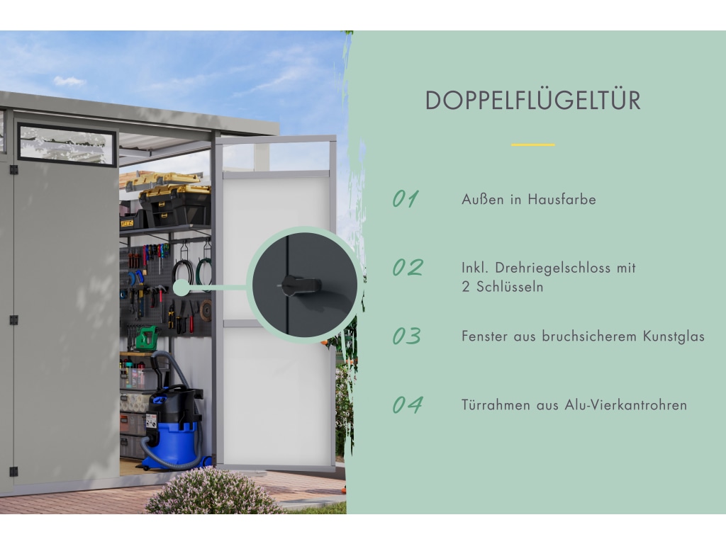 | Lieferumfang: | Metall-Gerätehaus, detaillierte Montageanleitung |