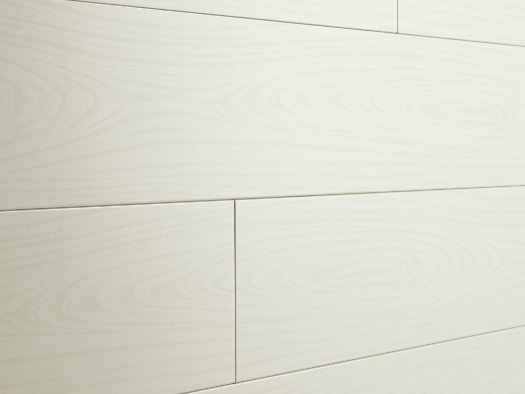 Paneele Esche- Alpinweiß Dekor Tertio 2009,5 mm stark, 128 x 20 cm, Nut & Feder, Nullfuge