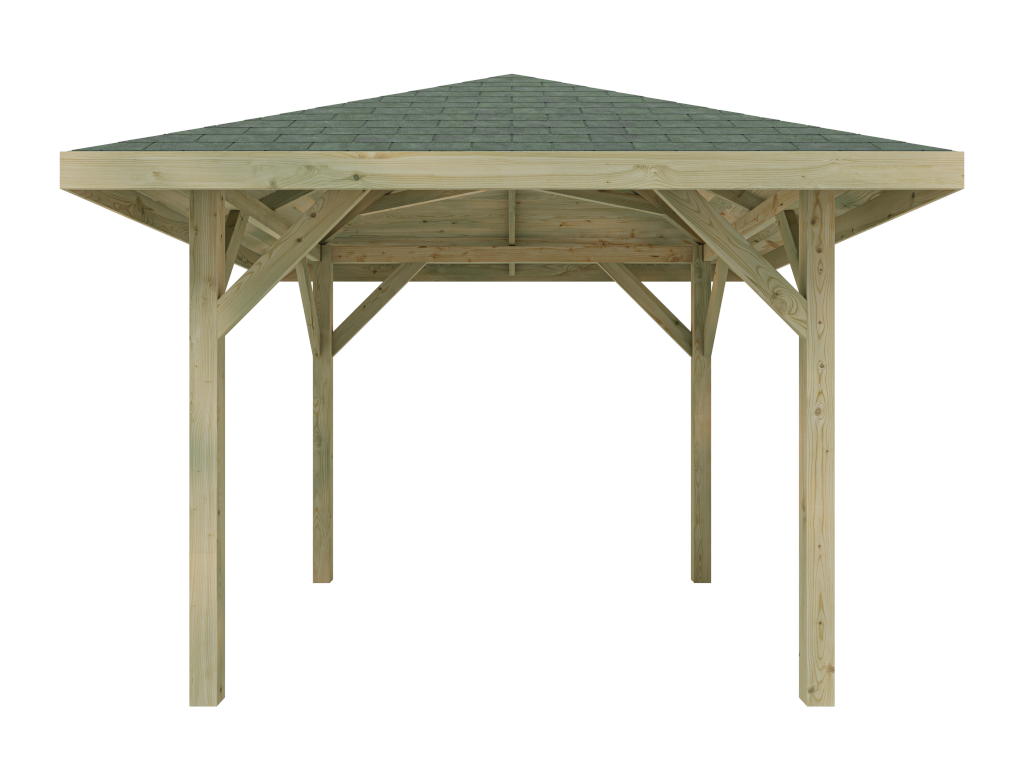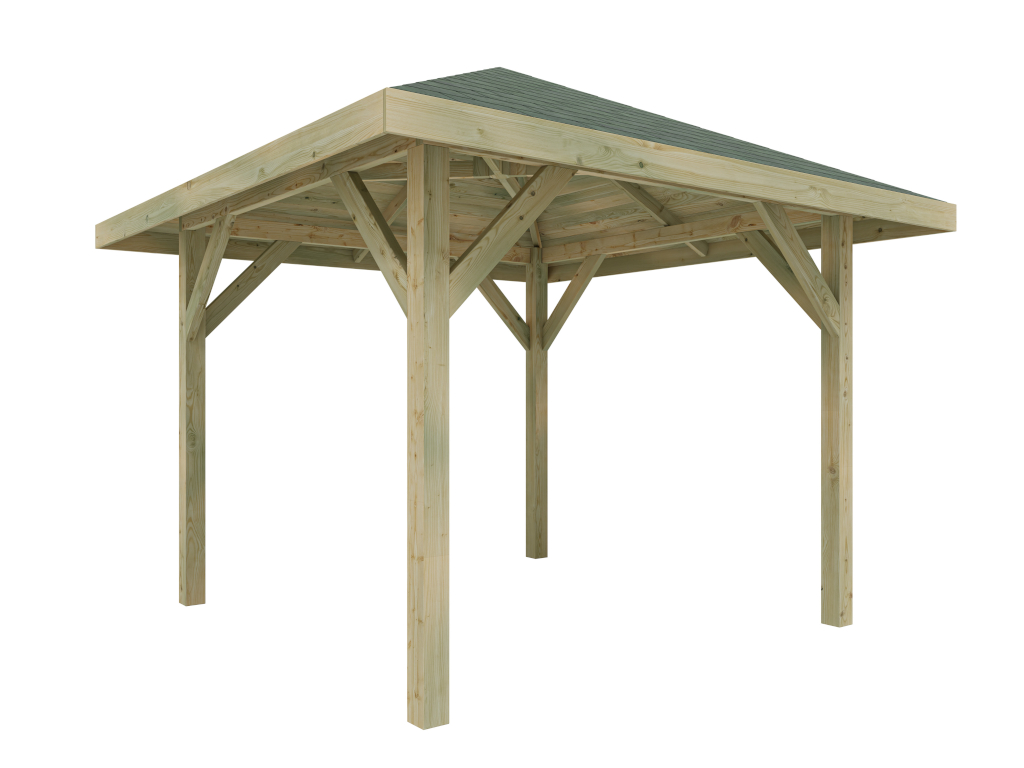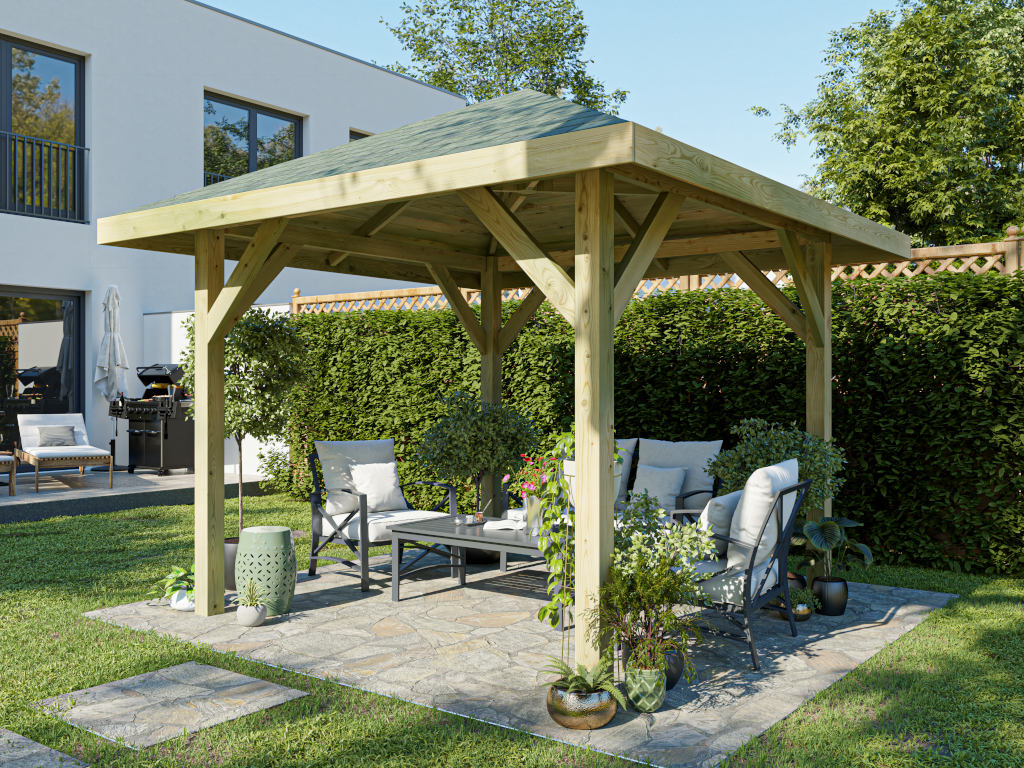 Pavillon Gartenlaube Tourist Kiefer imprägniertB x T x H: 338 x 338 x 305 cm, Sockelmaß B x T: 265 x 265 cm, Pfostenstärke 11,5 x 11,5 cm