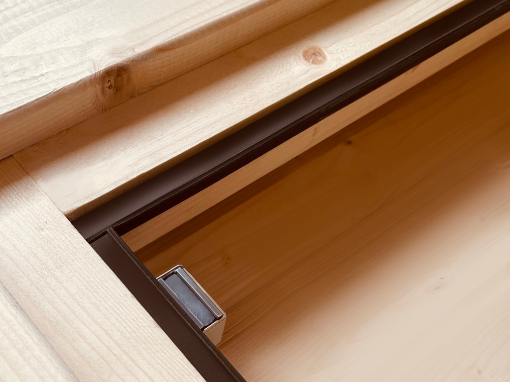- Isolierung im Dachbereich: Eine Isolierung im Dachbereich sorgt dafür, dass die Wärme in der Sauna bleibt und nicht nach oben ausweicht. Die Isolierung ist in zwei Teilen vormontiert.