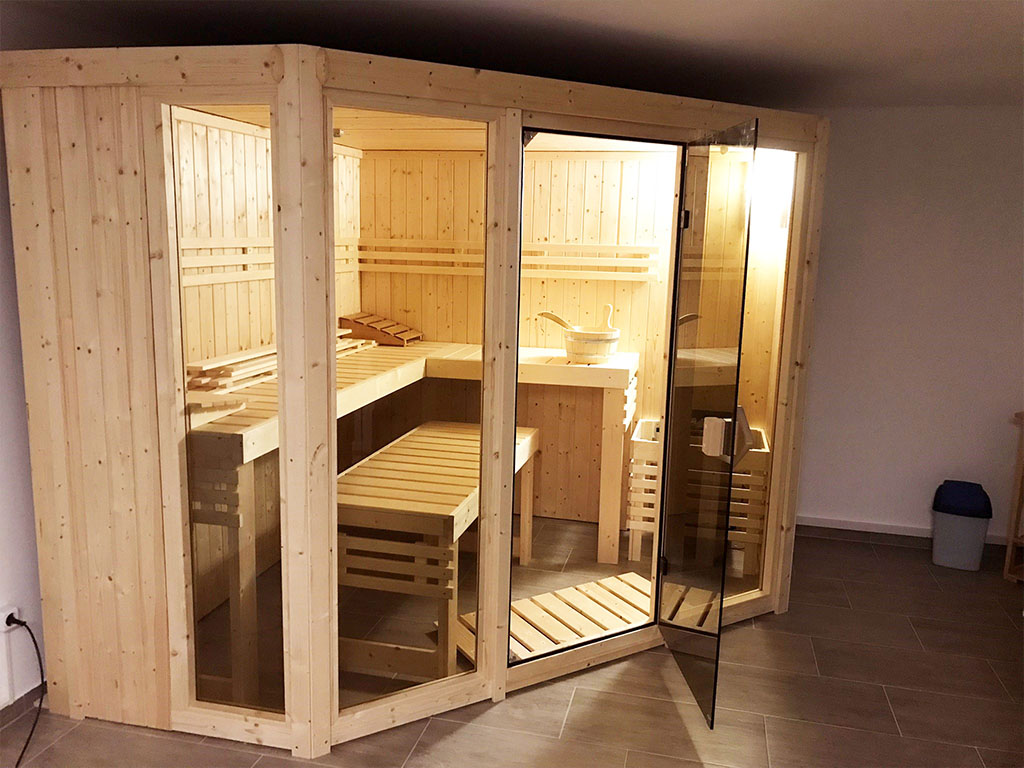 Bei der Montage einer Sauna muss ein Mindestabstand von 10 cm zu Wänden und Decke unbedingt eingehalten werden, um gute Luftzirkulation zu gewährleisten. So kann feucht-warme Luft besser abziehen. In diesem Zusammenhang müssen die Mindestraumhöhe und -breite beachtet werden.