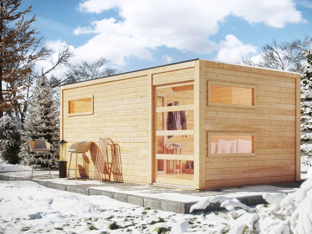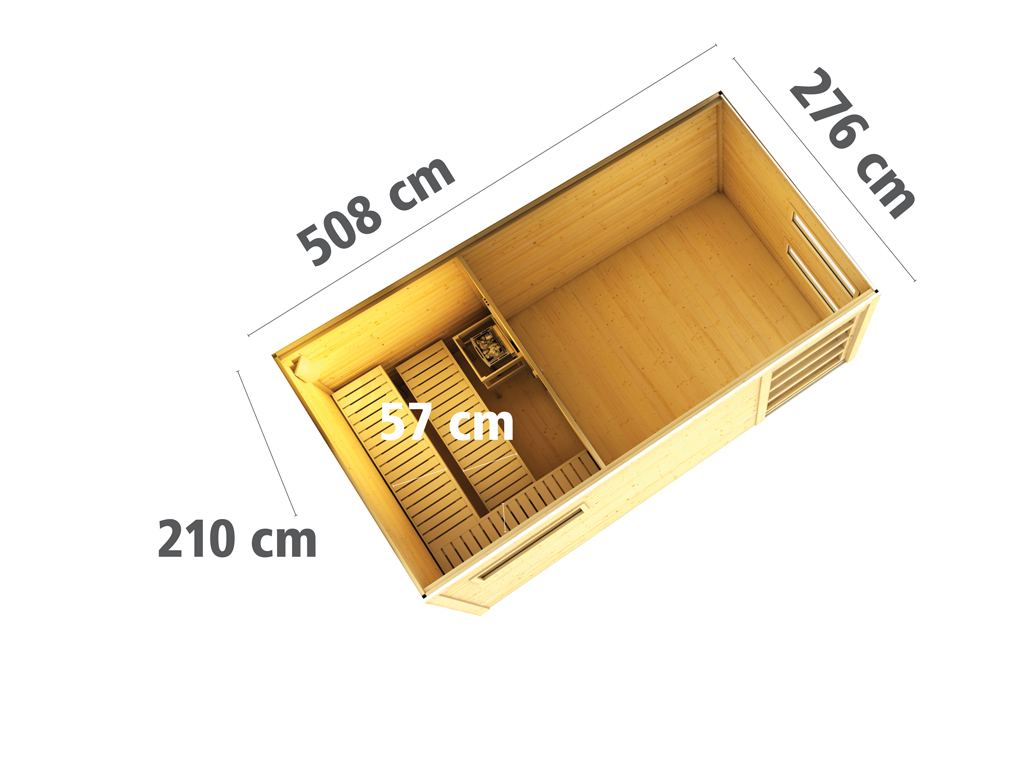 Saunahaus Hygge mit Schiebetür & VorraumB x T x H: 508 x 276 x 210 cm, Fronteinstieg, inkl. 3 Liegen