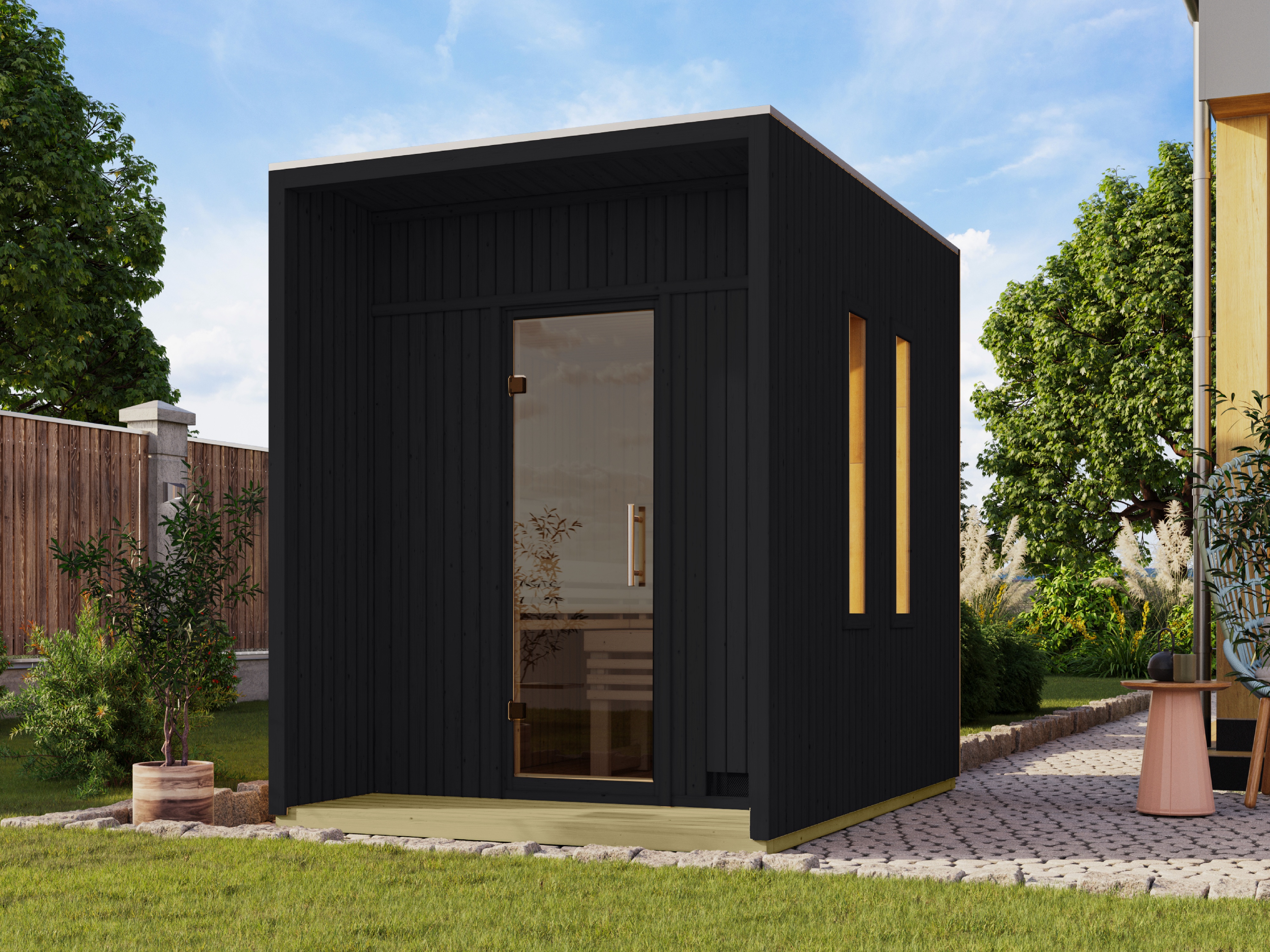 Erlebe pure Entspannung mit deiner Gartensauna: Hochwertige Materialien und attraktives Design sorgen für ein einzigartiges Saunaerlebnis direkt in deinem Garten. Hier können 1-2 Personen gleichzeitig saunieren.