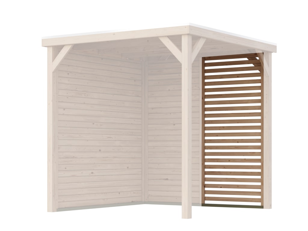 Die Lamellenstruktur sorgt für ein angenehmes Raumgefühl und ermöglicht zugleich Luftzirkulation, während die stabile Verarbeitung eine langlebige Nutzung gewährleistet. So kannst du deinen Pavillon flexibel erweitern und gleichzeitig für mehr Komfort und Privatsphäre sorgen.