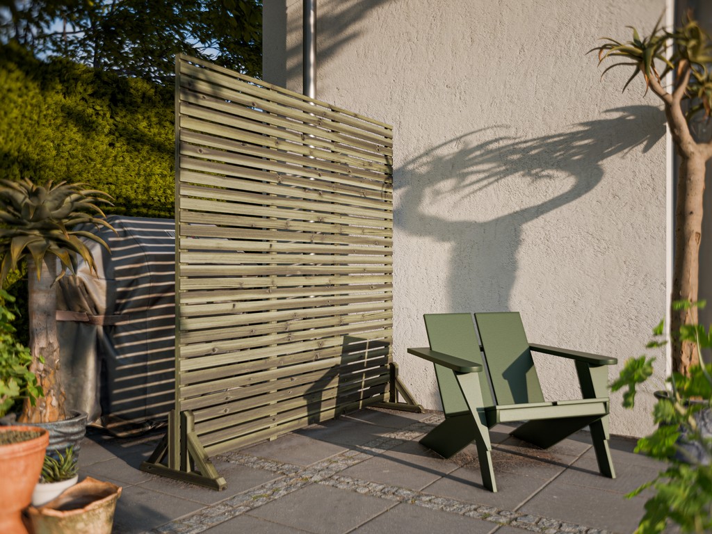 Sichtschutzzaun Lamellenzaun Kiefer Aosta...B x H: 180 x 180 cm, Kiefer, Schnelle Montage mit Stellfuß im Zubehör erhältlich, vorlasiert