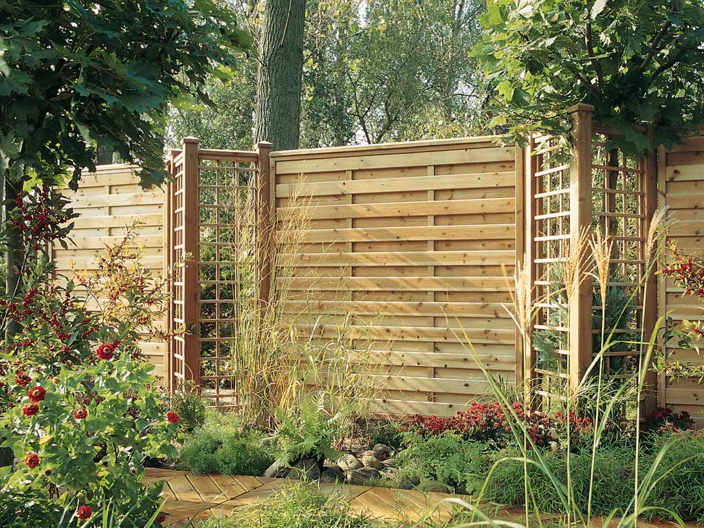Der Zaun LETTLAND besticht mit seinen 4,2 x 4,2 cm starken Rahmen aus Kiefer mit verzapften Ecken und seine in mehreren Schichten wetterfesten und stabilen Verleimung. - Stabiler Aufbau