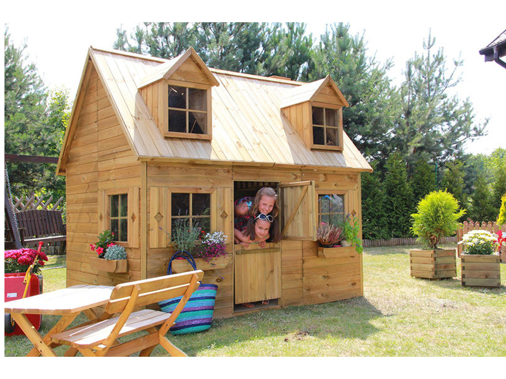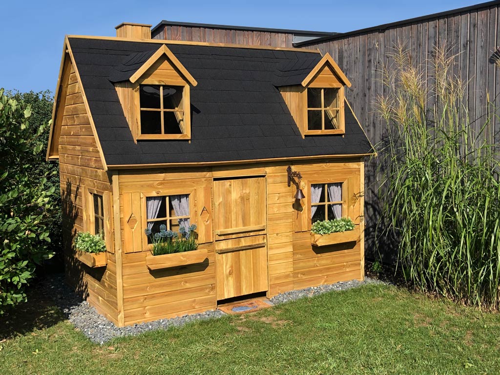 Das Spielhaus mit Schlafboden sorgt für großes Spielvergnügen bei den Kindern.
