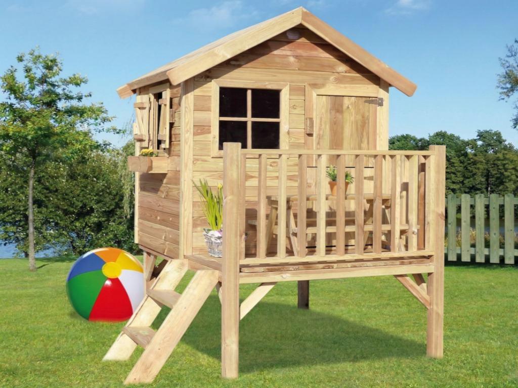 Das Stelzenhaus wird mit Einzeltür, 2 Fenstern, Treppe und einem Blumenkasten geliefert und sorgt für großes Spielvergnügen bei den Kindern.