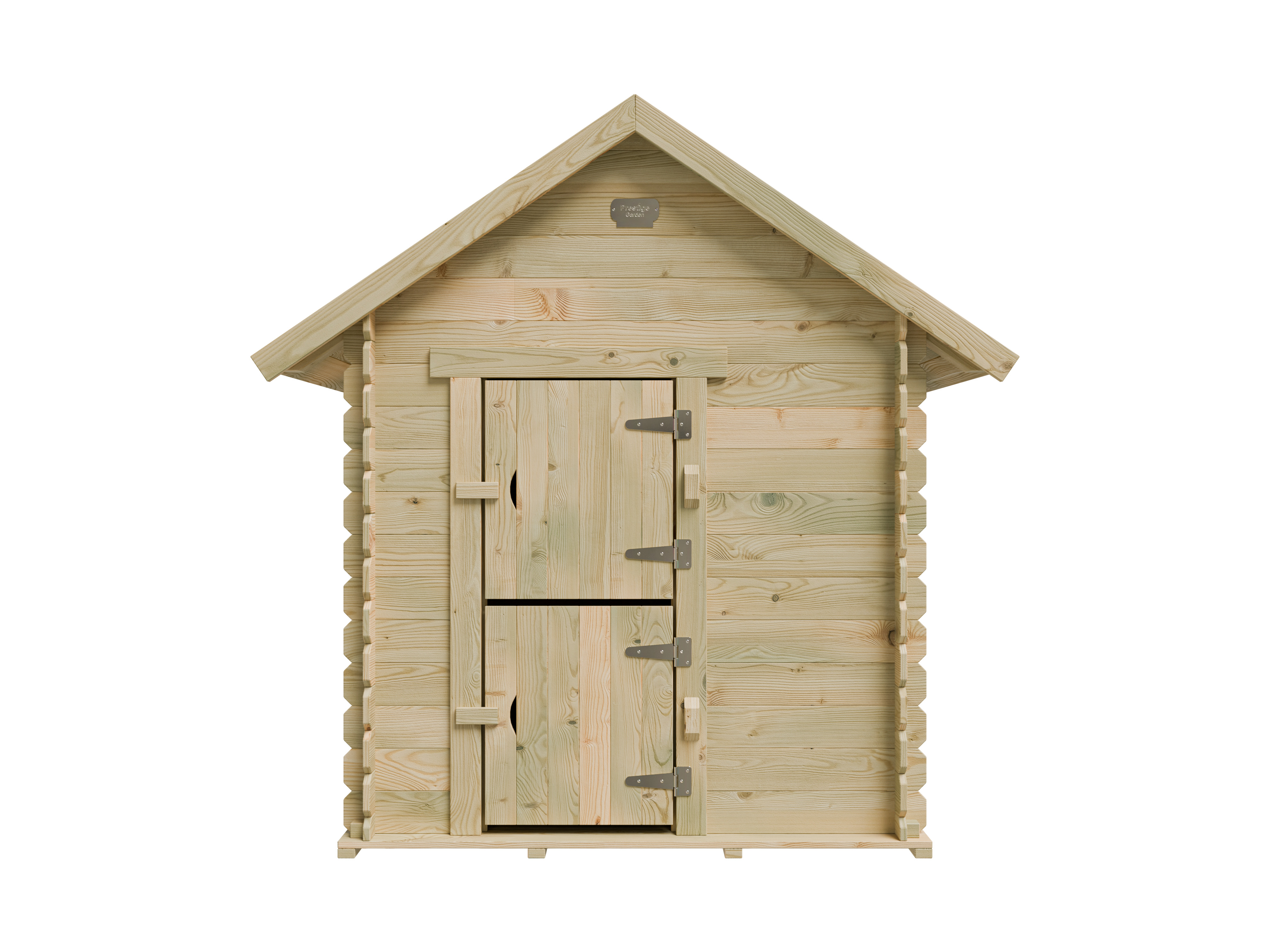 Die breite Einzeltür und das eingebaute Fenster bringen viel Licht ins Innere dieses Kinderspielhauses und sorgen für ein angenehmes Wohlempfinden. Das Fenster sowie die zweigeteilte Holztür sind mit einem Fingerklemmschutz ausgestattet. - Stabile Grundkonstruktion