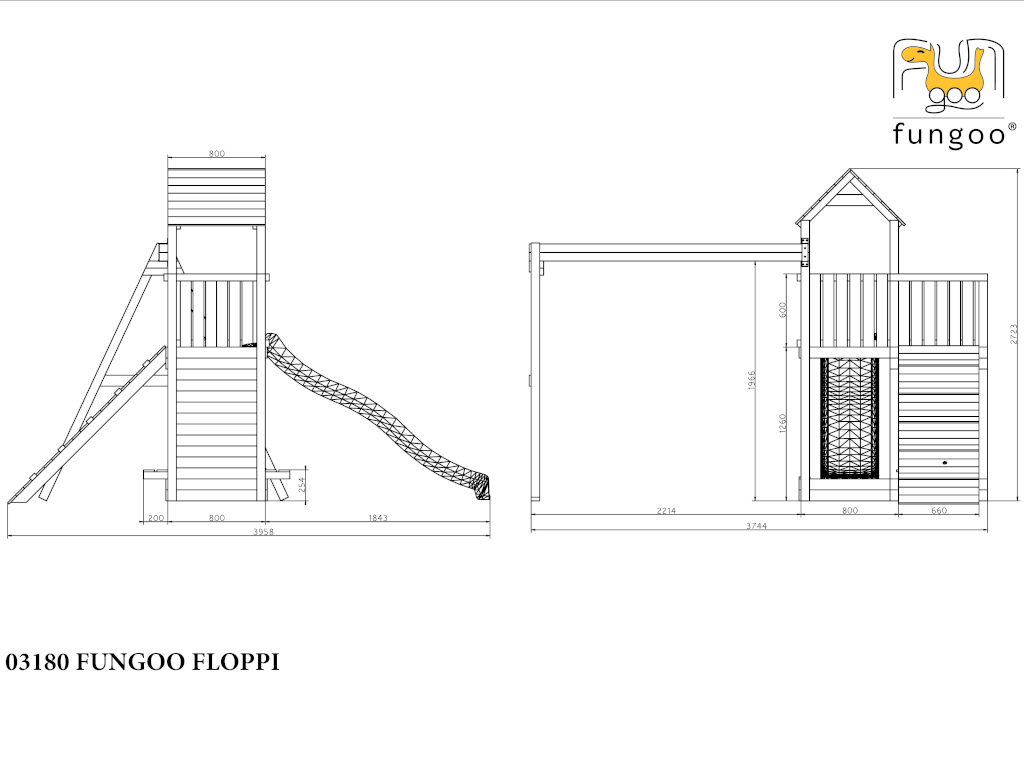 Spielturm Floppi teakfarben inkl. Doppelschaukel + Rutsche