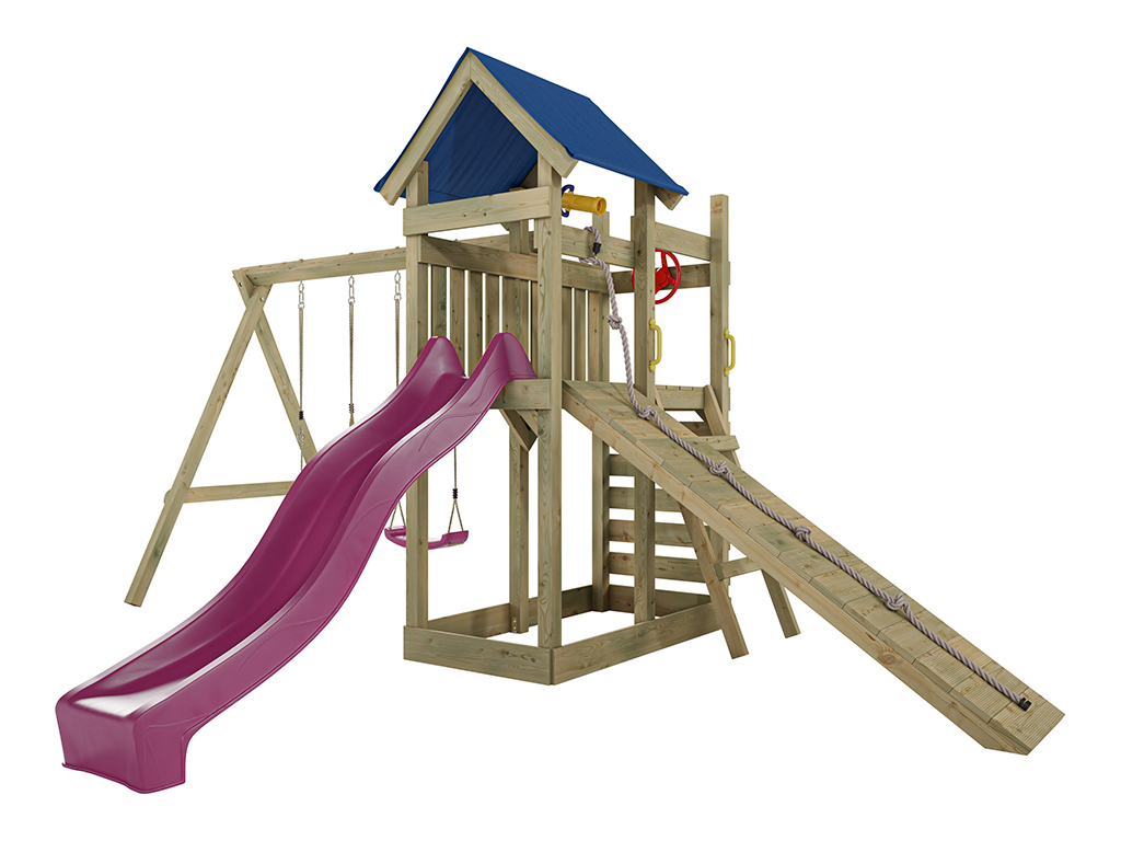 - Inklusive Rutsche in Pink mit 9 x 9 cm starkem Schaukelbalken.