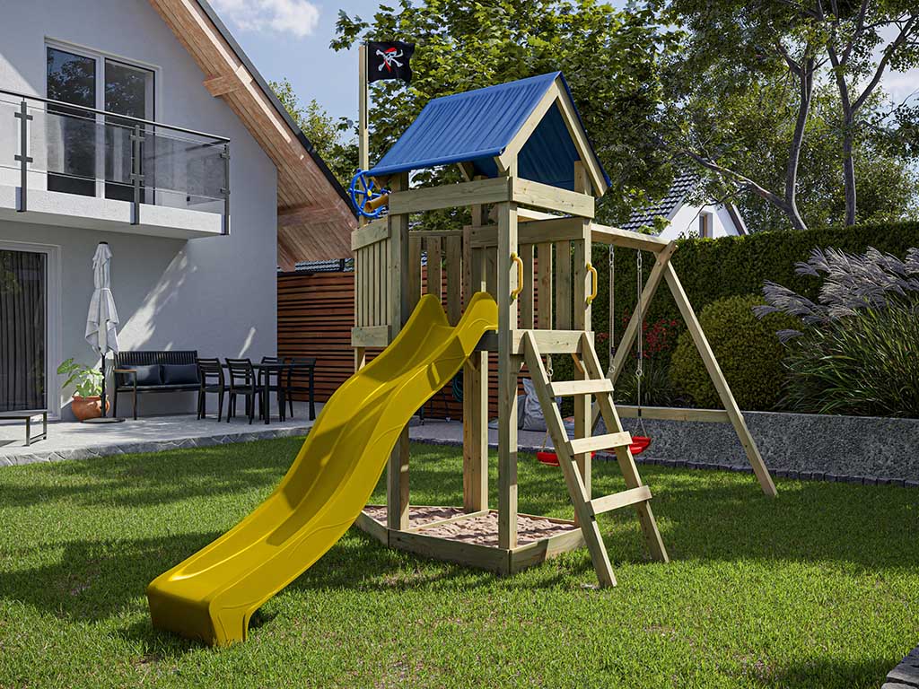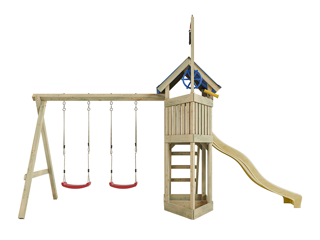 Outgarden Spielturm Captain Jolly KDI inkl. Doppelschaukel inkl. Rutsche gelb + Sitze rot